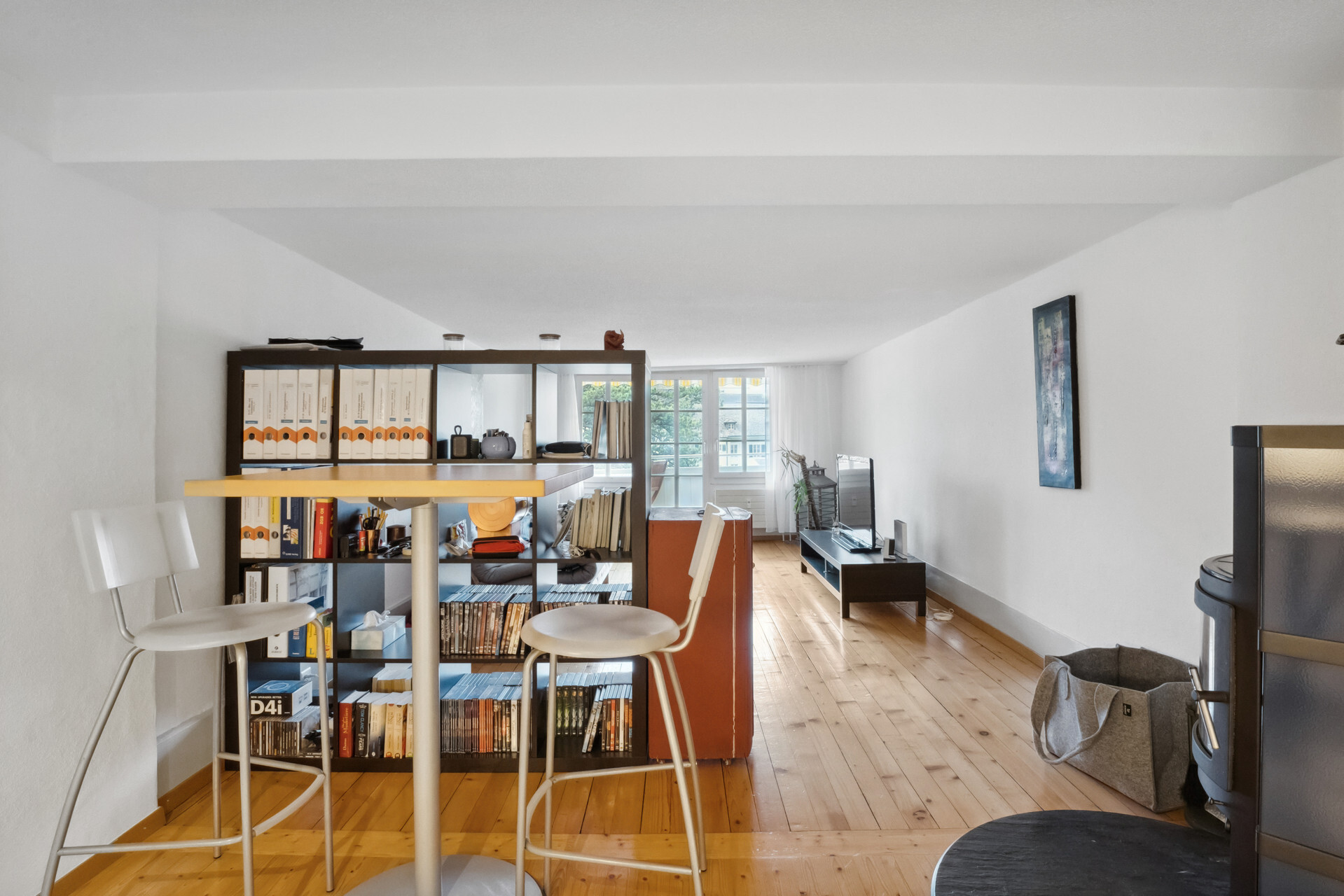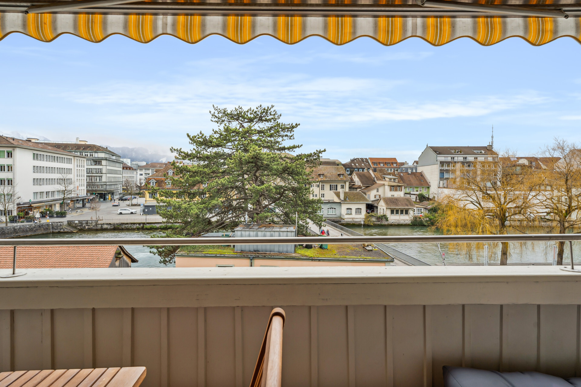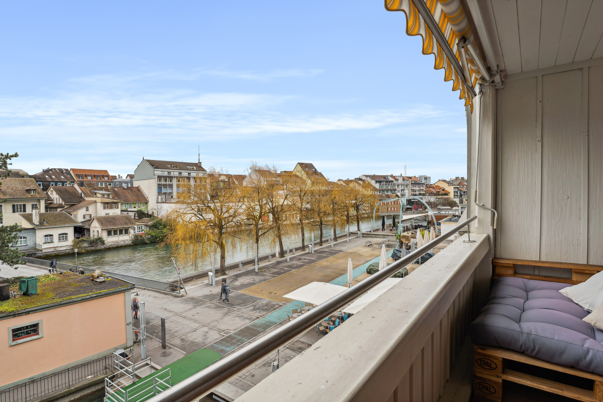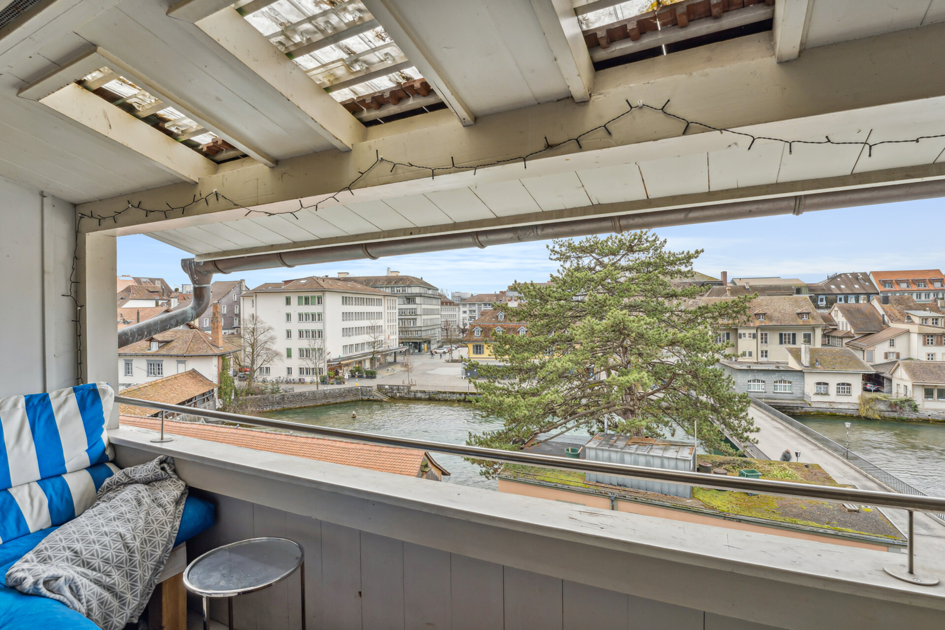 Ansonsten hat moderner Wohnkomfort Einzug gehalten. Die beiden Wohnungen im ersten und zweiten Obergeschoss bestehen aus einem Schlafzimmer zur Hauptgasse und einem Wohnraum mit vorgelagertem Balkon zum Aarequai. In der Mitte sind die Küche und das hell geieste Badezimmer mit Wanne angeordnet. Über die beiden obersten Etagen erstreckt sich eine DuplexWohnung. Sie ist auf der unteren Ebene gleich geschnitten wie die Wohnungen darunter, verfügt aber unter dem Dach mit Lukarnen über zwei Räume und ein weiteres Bad mit Dusche. Für diese Wohnung steht für Mai dieses Jahres ein Mieterwechsel an.
