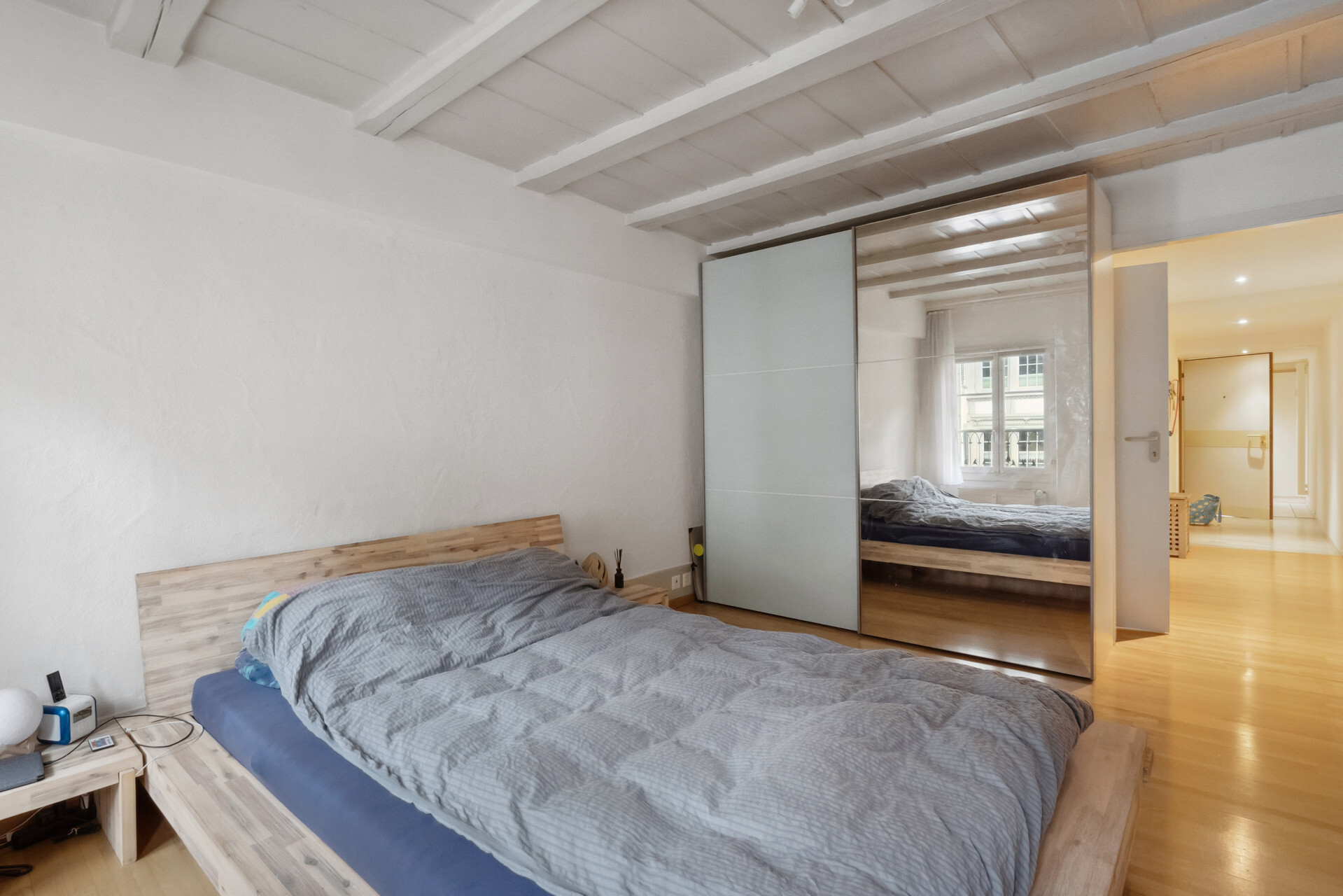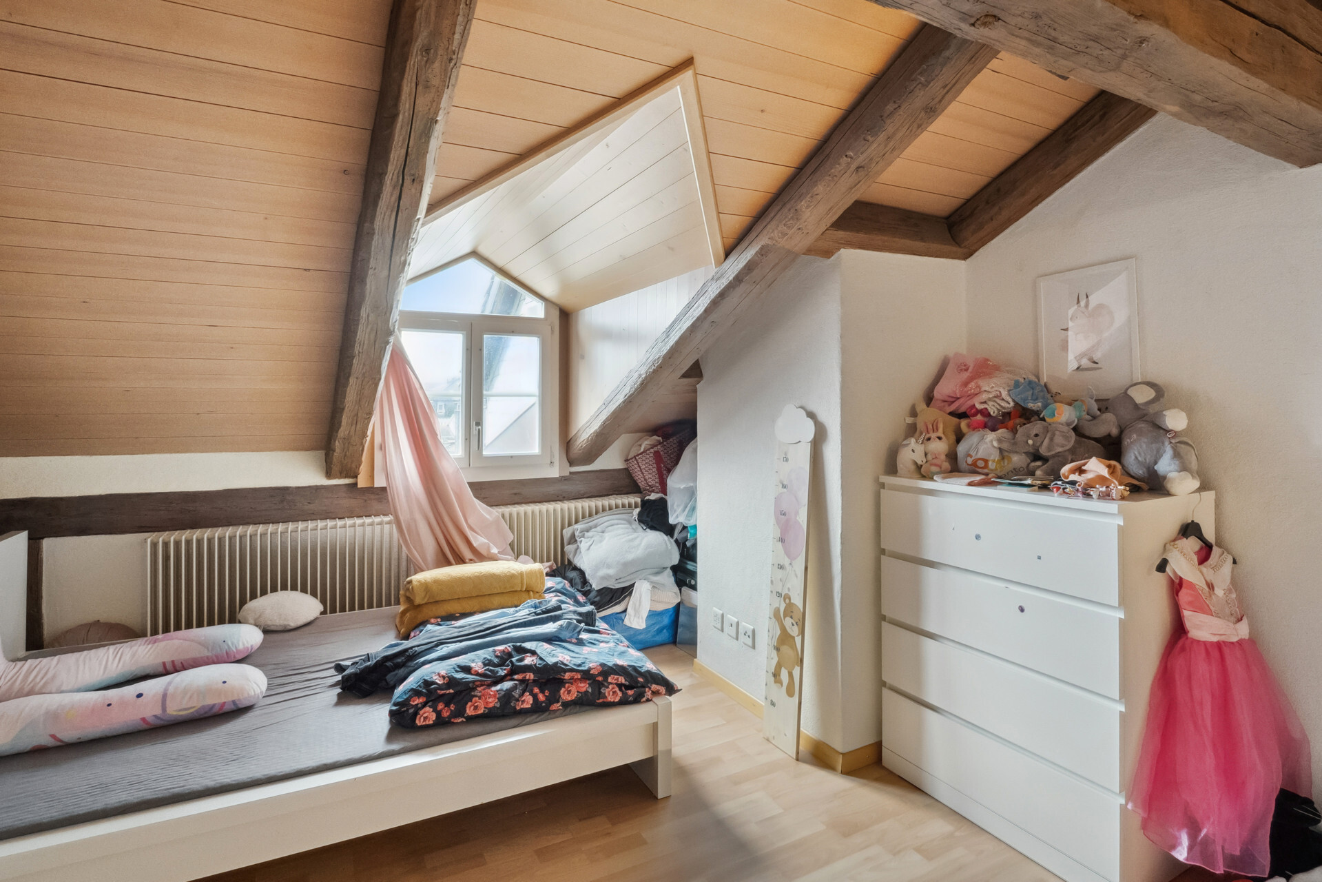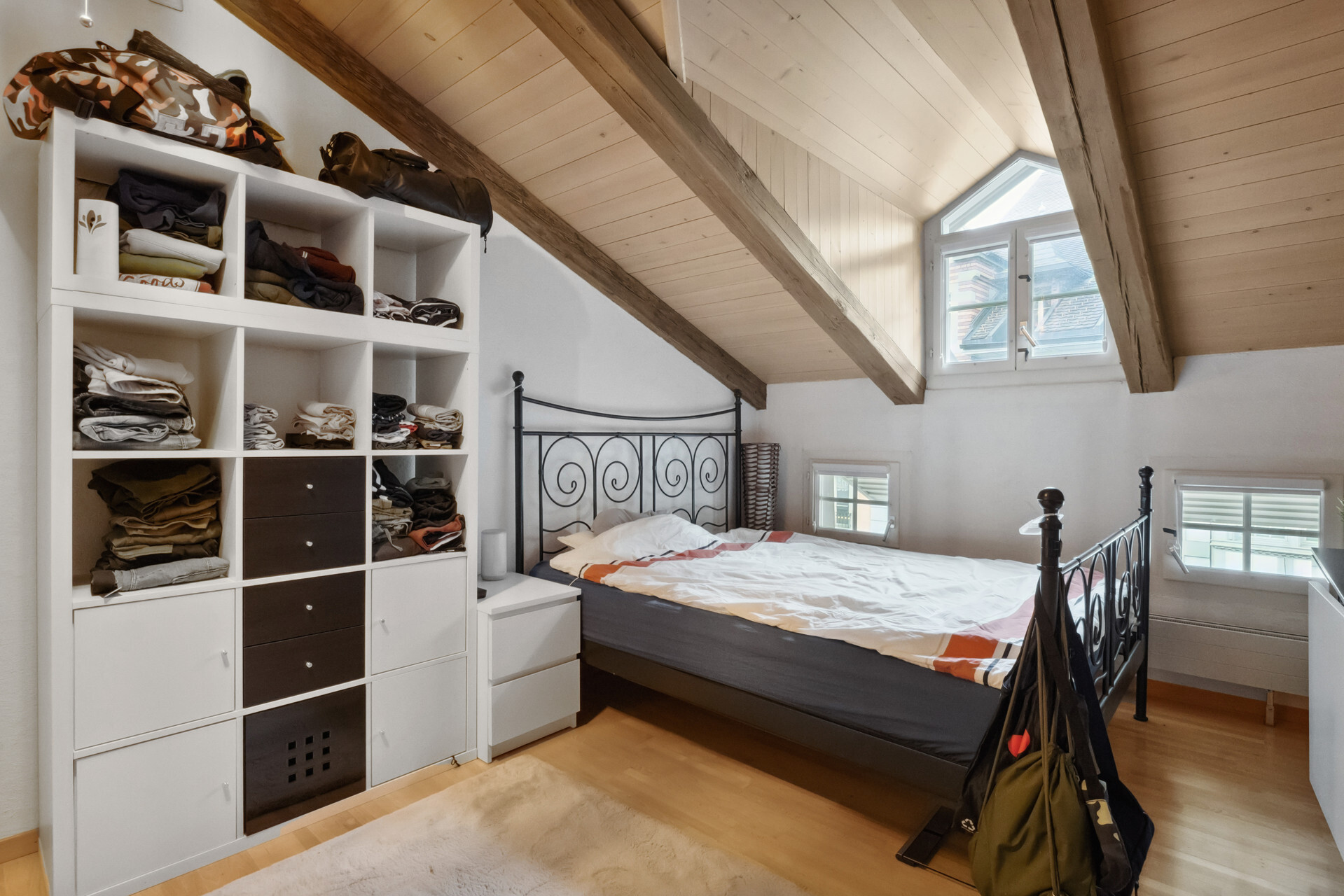 Ansonsten hat moderner Wohnkomfort Einzug gehalten. Die beiden Wohnungen im ersten und zweiten Obergeschoss bestehen aus einem Schlafzimmer zur Hauptgasse und einem Wohnraum mit vorgelagertem Balkon zum Aarequai. In der Mitte sind die Küche und das hell geieste Badezimmer mit Wanne angeordnet. Über die beiden obersten Etagen erstreckt sich eine DuplexWohnung. Sie ist auf der unteren Ebene gleich geschnitten wie die Wohnungen darunter, verfügt aber unter dem Dach mit Lukarnen über zwei Räume und ein weiteres Bad mit Dusche. Für diese Wohnung steht für Mai dieses Jahres ein Mieterwechsel an.