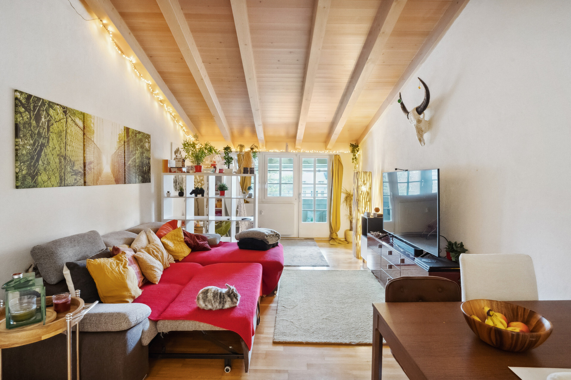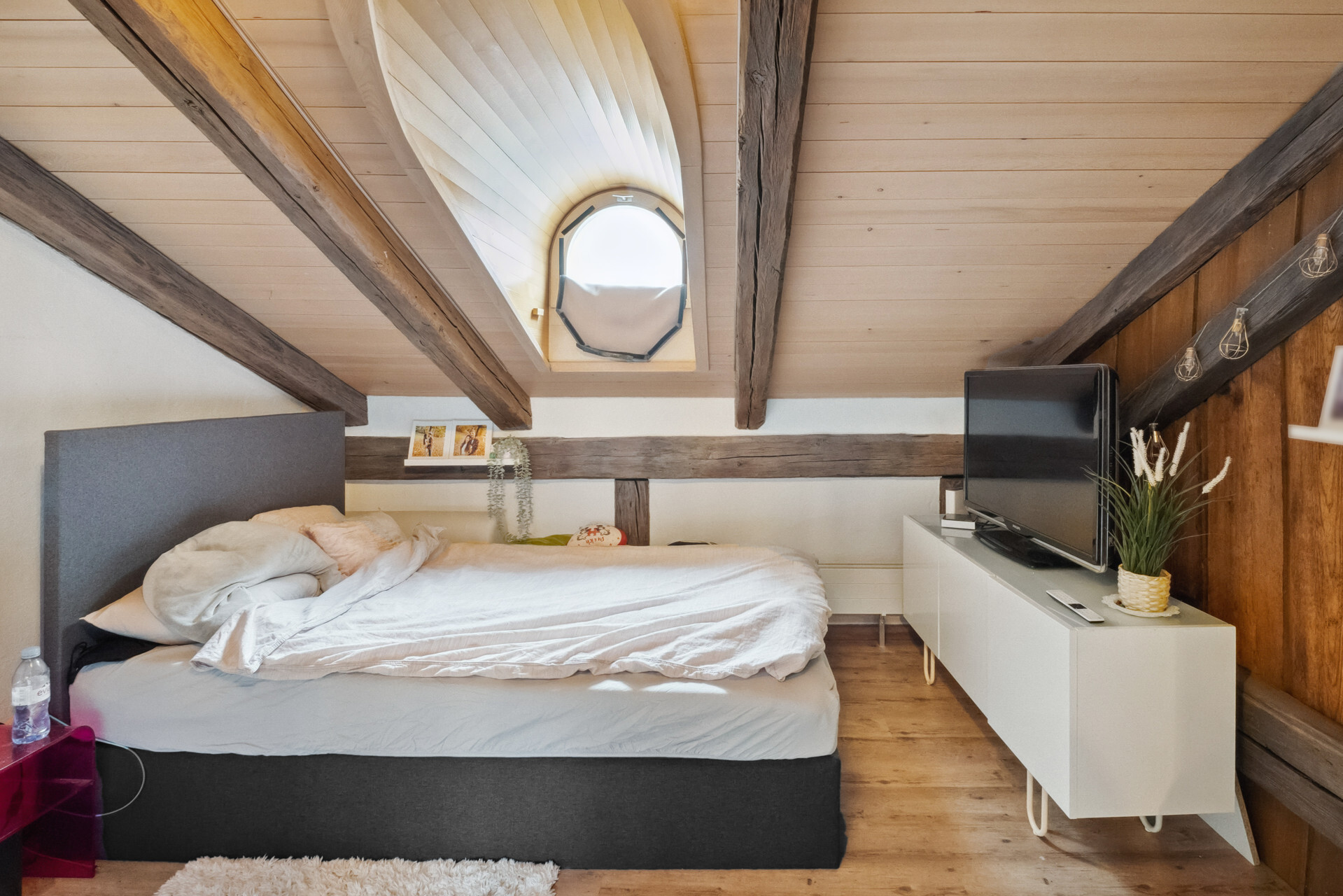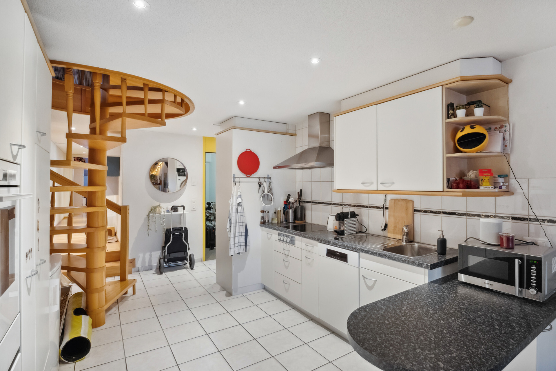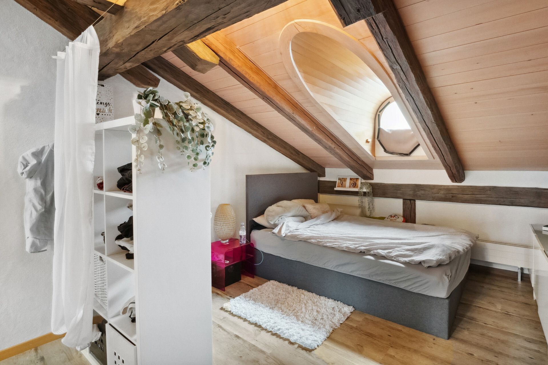 Ansonsten hat moderner Wohnkomfort Einzug gehalten. Die beiden Wohnungen im ersten und zweiten Obergeschoss bestehen aus einem Schlafzimmer zur Hauptgasse und einem Wohnraum mit vorgelagertem Balkon zum Aarequai. In der Mitte sind die Küche und das hell geieste Badezimmer mit Wanne angeordnet. Über die beiden obersten Etagen erstreckt sich eine DuplexWohnung. Sie ist auf der unteren Ebene gleich geschnitten wie die Wohnungen darunter, verfügt aber unter dem Dach mit Lukarnen über zwei Räume und ein weiteres Bad mit Dusche. Für diese Wohnung steht für Mai dieses Jahres ein Mieterwechsel an.