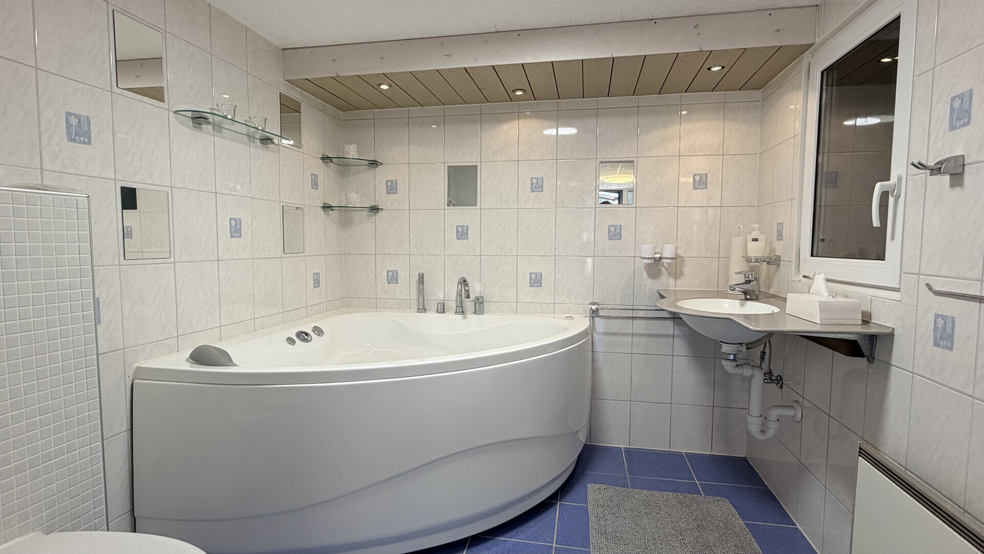 – Grosses Badezimmer mit Whirpool (von aussen zugänglich – ideal nach Sauna)