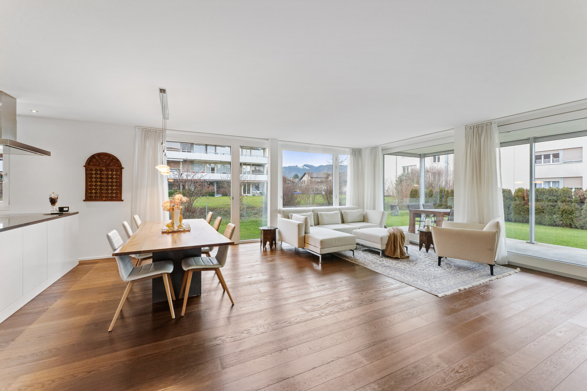 Moderne 5.5-Zimmer-Gartenwohnung mit Privatsphäre in HeimbergIhr neues ZuHause wartet auf Sie.