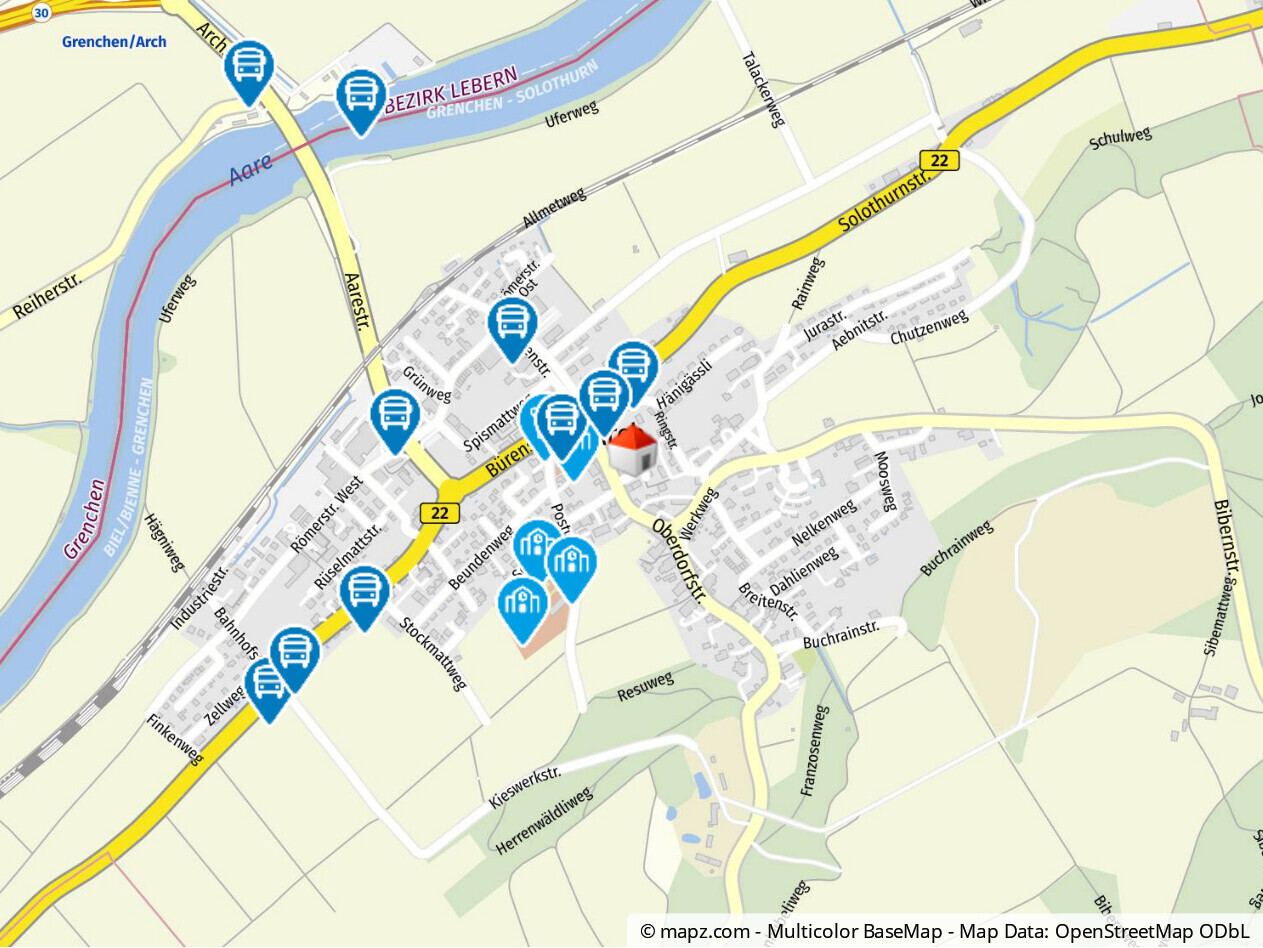 Die Liegenschaft befindet sich in ruhiger und zentraler Lage von Arch, nur wenige Gehminuten vom Dorfzentrum, Einkaufsmöglichkeiten und öffentlichen Verkehrsmitteln entfernt.