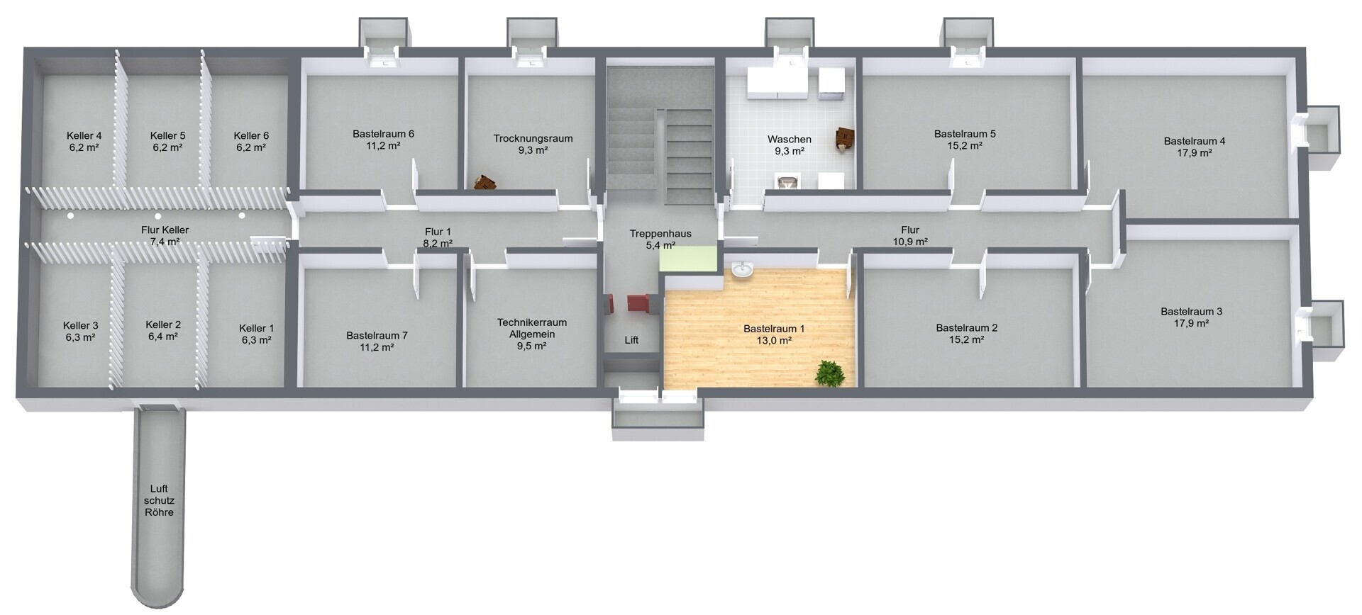 Per 1. Februar 2026 vermieten wir den Bastelraum Nr. 7 im Untergeschoss der gepflegten Liegenschaft an der Oberdorfstrasse 9 in Arch.Der Raum mit einer Fläche von ca. 12 m² eignet sich ideal als Hobby-, Bastel- oder Lagerraum und bietet dank seines praktischen Zuschnitts vielseitige Nutzungsmöglichkeiten.